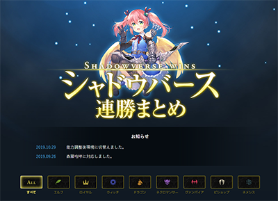 本格スマホeSports「シャドウバース」におけるtwitter上の連勝情報を収集してまとめるサイトです。