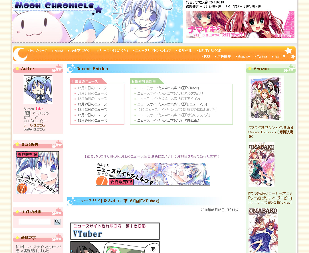 2008年からMOON CHRONICLEで連載していたニュースサイトたん4コマを単行本化してCOMIC1やコミティアで頒布しました。